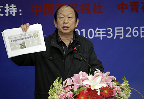 另外还有一个事,我觉得不能误导我们的大学生,好像当保安就可以没有资质就上岗,我们很多事情就是因为保安无知出的事,比如说有一个北京的楼盘,就是在地下车库里业主被别人杀了,很简单,正门进去进不去,歹徒从出库进去的,在国外的标准是什么呢,保安的要求也好,说你自保的要求,你去取车到车门叩门,按一下公寓的车库门打开,进去以后你等在这,等这个落下来再走,哪怕这个人熟,因为你不可能给任何人给自己提供犯罪的东西,我给你开了,你这东西给谁去了,好像当保安就不需要资质。好像捏脚的,好像毕业完了,学点中医就可以去捏脚了,我是中国一个很著名的足道企业的顾问,那是需要很大的学问,所以中国出了一个现象,捏脚的都是两句话,脾胃不合,颈椎不好,全是这个,这就形成了误导。我刚才谈到了一个蓝领的问题,我儿子出了一本书,这本书很逗,所有出版社不看好,最后新华出版社看好。因为我想让他知道中国的装修是什么,我没想到他跟很多装修工人打成一片,因为他发现跟他看到的人不一样,他觉得这些人很乐观,可以想像他们的工作那么辛苦,居然还工作得那么开心,我儿子他就把他们的过程写成一本书,这本书其中介绍到,现在的手艺高点瓦工的工资加上加班费能达到7000,连北京报的记者都不信,最后把这个瓦工叫去跟我儿子做了一整版的报道,我们大学生有些学则了上大学,有些学则了更有出路的专业,比如说汽车修理,你修理好了可以到汽车去当主持人,在电台当好了,就可以去北京电视台去,北京台就有这样的例子,有车的越来越等,不会修车的也越来越多,这一类的事很多。我们今后有时间应该总结总结,告诉我们的大学生,哪些人适合在人生的这个时段去上学,哪些人适合在这个时段里去学一些和你更相关的,我有一个朋友的孩子前两天跟我讲,他死活不出国,他们家条件很好,他儿子跟他爸算一笔帐,最后对他爸爸说,你能把这些钱拿来给我买一辆车,或者用一种的一部分给我买一辆车,结果他爸爸花200万给他买了一辆车,虽然很讨厌这个话题,但是我为这个孩子骄傲,因为这个孩子从小喜欢车,他现在给我讲出来车的概念,我找出来在车的行业去跟他讲,讲不过他,他将讲我为什么要一个好车,他说今后我要开一个店,我那个店里能没有镇宅之宝吗,你像这样的孩子,要换一般的富二代,得往北美送、得往伦敦送。是不是所有的人都适合走这条路,所以我们今天看着出现这么多人需要解决这个问题的时候,如果寻根朔缘的话,如果当时分馏的话,可能会好得多,在这一点上我特别希望中青报能讲一讲,千军万马没有必要都走这独木桥。