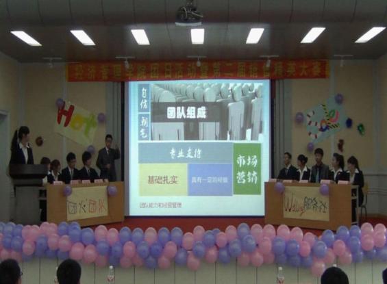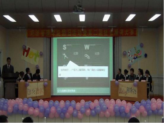 本次比赛分为“运筹帷幄”、“决胜千里”和“反躬自省”三个环节。在前前两个环节活动中两支参赛队分别以视频短片的形式展示了各自团队从赛前营销讨论到实战营销的全过程,在前两个环节结束后评委老师根据短片中各团队的表现进行提问和打分。在“反躬自省”环节两队队长分别以PPT的形式针对市场分析、营销策略、产品组合、实战营销等环节进行反思总结,PPT生动形象,讲解人条理清晰、总结深刻,两位队长精彩的总结赢得了现场观众热烈的掌声。