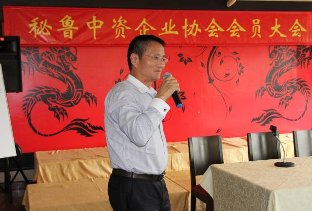 秘鲁中企协会新任会长孔爱民在发言中说,面对中国经济增速放缓和国际大宗商品价格持续走低的不利形势,秘鲁中企协会今后将把“务实、创新、合作、共赢”作为协会的发展理念,不断完善协会的工作制度和规划目标。他表示,中企协会将继续加强与秘鲁政府部门及社会各界的交往沟通,积极融入当地社会。