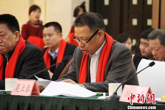 1月20日,山东省侨商协会2016年座谈会在山东济南召开,图为山东侨商协会会长吴立春讲话。(沙见龙 摄)山东侨商协会要不断为海外侨商提供投资、创业的商机,将山东打造为侨商的“家乡”。山东省侨商协会2016年座谈会20日下午在山东济南召开。来自山东侨商协会的会员代表出席当天会议,共同总结2015年展望2016。山东省侨商协会会长吴立春介绍说,2015年,山东省侨商协会与山东省各地市侨办联合举行了多次考察活动。山东省侨商协会希望通过交流活动,增进侨商对山东各地市的了解,促进侨商积极参与山东经济、社会等领域的发展,实现互利共赢。协会一直努力发挥熟悉山东省情老侨商的“传播”作用,以吸引更多新晋年轻侨商走进山东,致力将山东打造为侨商的“家乡”,创业的“沃土”。