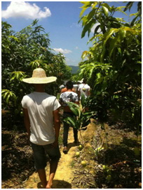 石峰深入芒果、柚子、脐橙等农业种植、养殖基地,来到田间地头第一线学习农业知识。
