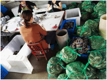 石峰在阳澄湖大闸蟹养殖基地。