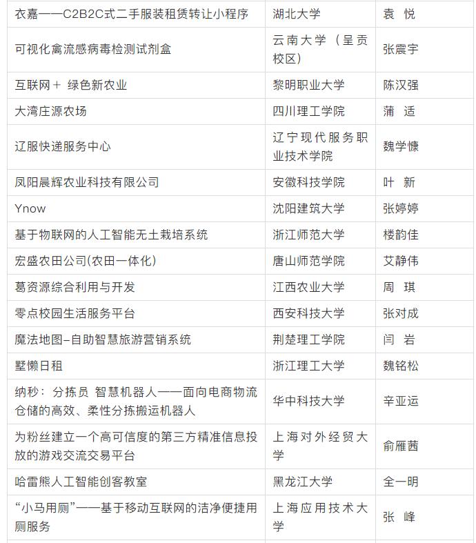 根据活动通知,2018年大学生微创业行动微创业项目征集活动从4月11日启动,截止9月30日,按照微创业项目征集要求,有980个项目通过初步遴选进入微信专题展示与投票环节。展示项目涉及移动互联网、金融支付、新农业、ARVR、医疗健康、电子商务、内容产业、物联网、人工智能等多个行业。11月7日,活动举办方有关负责人、创业教育专家、创投机构代表、创业青年等12名评审组成员对项目进行了评审。评审组主要依据创业团队、项目商业模式、盈利能力、创新性、可持续性、社会价值等方面进行评审。根据评审规则,本届活动共有50个微创业项目获奖。获奖微创业项目及优秀组织奖将获得相应奖励,其中20佳微创业项目将通过活动现场路演决出金奖10名、银奖10名,现对活动获奖名单进行公示。(获奖名单附后)